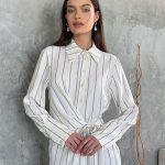 שמלת אלגנטית פסים קשירה