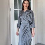 שמלת BILLY וולנים סאטן דיור – כחול-אפור מעושן